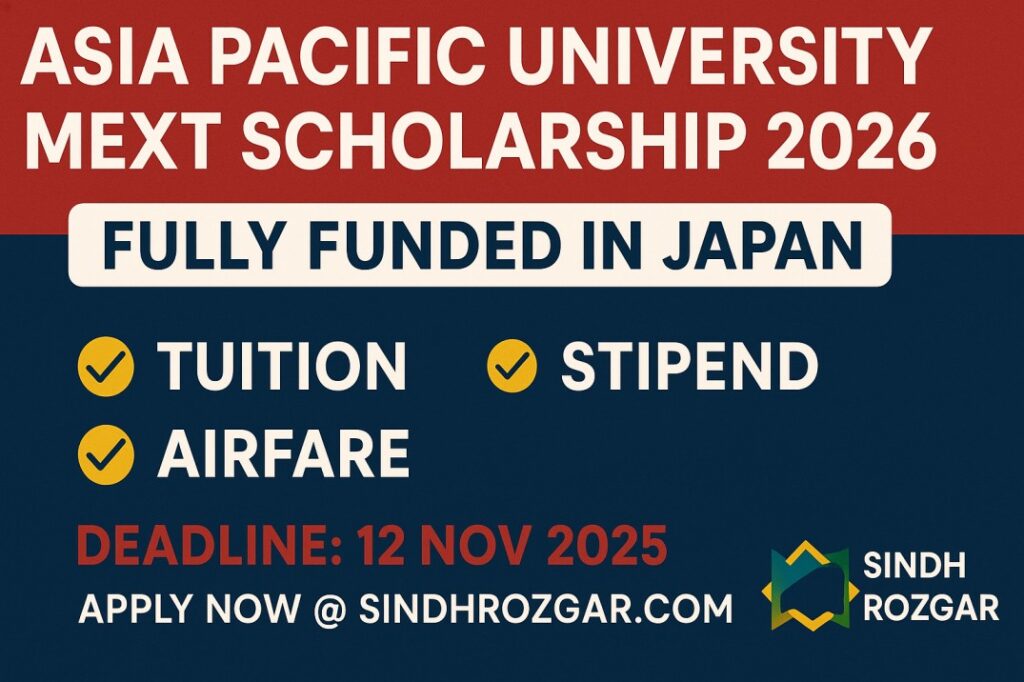 Asia Pacific University (APU) MEXT Scholarship 2026 — a fully funded opportunity for international Master’s & PhD applicants. Learn eligibility, documents, timeline, and tips for Pakistani students.