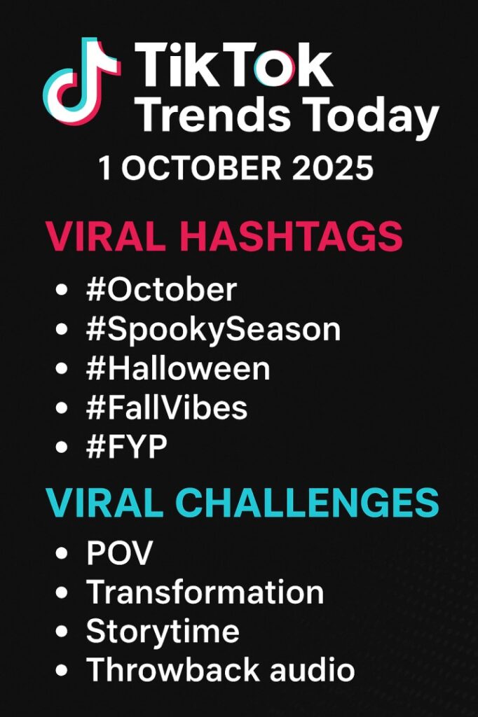 TikTok Trends Today – Viral Hashtags & Challenges (1 October 2025) Read More »
